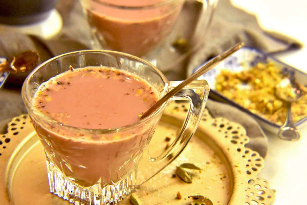 Kashmiri Food is recognized for its distinctive preparations and delicate tastes, such as the warming butter tea, “Gur Gur Chai.” This traditional Kashmiri beverage is made of yak butter, water, tea leaves, and salt, which are cooked in a special teapot to get a creamy consistency. It exemplifies Kashmir’s strong spirit and cultural character, providing a respite from the harsh winters and playing an important role in the community’s identity.